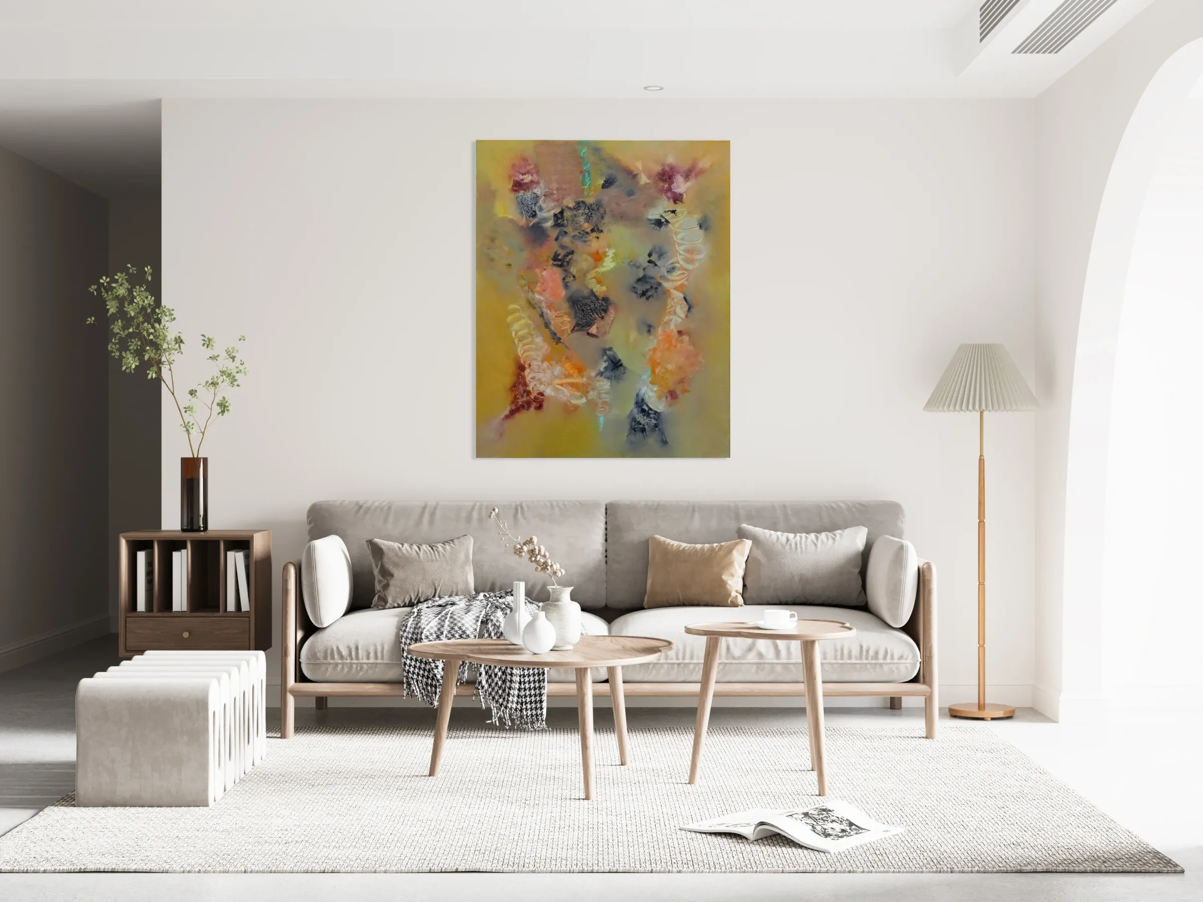 Description of the Abstract Painting: This abstract painting titled "Without You I Am Full of Emptiness" is a reflective piece of modern abstract art, perfect for those who enjoy abstract paintings that evoke emotion and introspection. The composition features a subtle palette of soft ochres, earthy browns, pale reds, and hints of white spirals, creating a delicate and atmospheric effect. The layered textures and organic forms seem to float within the composition, suggesting a sense of weightlessness and absence. The soft spirals and muted tones invite viewers to explore the contrasts between presence and emptiness, adding a poetic quality to the artwork. Ideal for lovers of modern abstract art, this piece captures a sense of emotional depth and quiet reflection. It’s an elegant and thought-provoking addition to any space or collection, offering an exploration of abstract forms and subtle layers of meaning.