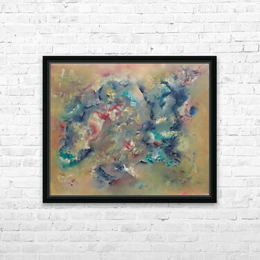 Description of the Abstract Painting: This abstract painting titled "Delimiting the Overload" is a striking example of modern abstract art, perfect for those who appreciate abstract paintings that explore texture, depth, and complexity. The composition features a harmonious blend of soft greens, vivid turquoises, hints of red, and golden ochres, creating a layered and atmospheric effect. The textured surface and the organic transitions between colors evoke a sense of movement and intensity, as though capturing a moment of transformation or expansion. The interplay of light and shadow across the composition invites the viewer to delve deeper into its intricate details, offering a rich and engaging visual experience. Ideal for lovers of modern abstract art, "Delimiting the Overload" captures the balance between chaos and control, making it a thought-provoking addition to any space or collection. It encourages reflection and interpretation, while its harmonious palette brings a calming yet dynamic presence to its surroundings.