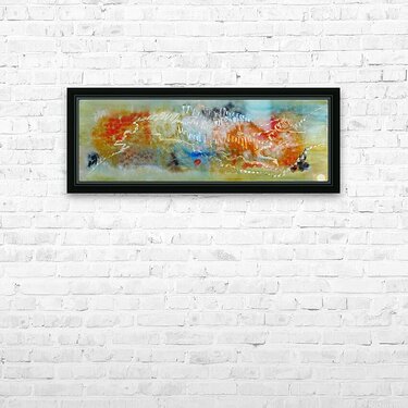 Description of the Abstract Painting: This abstract painting titled "Child's Play" is a vibrant piece of modern abstract art, perfect for those who enjoy abstract paintings filled with energy and movement. The horizontal composition features a dynamic palette of intense reds, vivid greens, soft blues, and contrasting textures, creating a lively and spontaneous visual effect. The wavy shapes and layered textures suggest continuous motion, as if the colors and forms are playfully interacting across the canvas. The white lines, created by removing paint with a rubber brush, add a sense of rhythm and playfulness, enhancing the dynamic quality of the composition. The balance between warm and cool tones provides depth and harmony. Ideal for lovers of modern abstract art, this piece captures the essence of creativity and play, evoking the boundless energy of childhood. It’s a striking addition that brings movement and freshness to any space or collection.